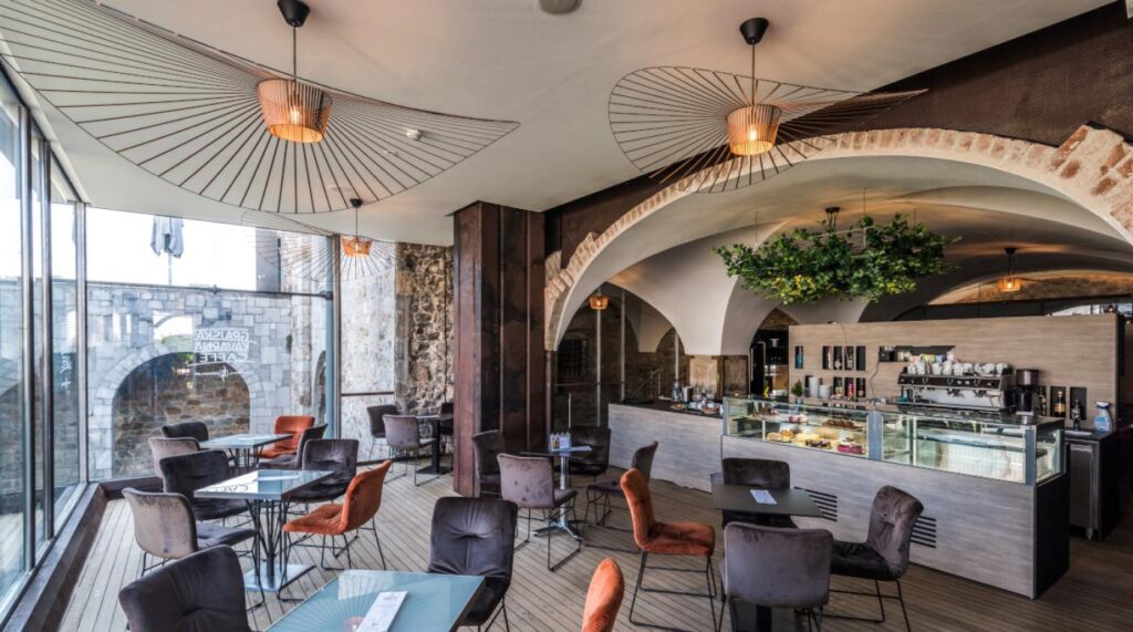 คาเฟ่บรรยากาศอบอุ่นภายในปราสาทลูบลิยานา เสิร์ฟกาแฟหอมกรุ่นและเบเกอรีโฮมเมดสูตรพิเศษ เหมาะสำหรับพักเบรกระหว่างชมปราสาท หรือจิบกาแฟชมวิวทางเข้าหอไวน์อย่างเงียบสงบ เมนูเด่นที่ต้องลองคือ “Ljubljana Castle Blend” กาแฟคั่วพิเศษที่พัฒนาสูตรเฉพาะร่วมกับนักคั่วท้องถิ่น เสิร์ฟคู่กับ “Bled Cream Cake” เวอร์ชั่นโฮมเมดที่ปรับสูตรให้เข้ากับรสชาติกาแฟ เปรียบเสมือนจุดเชื่อมระหว่างกลิ่นอายประวัติศาสตร์และความละมุนของศิลปะการใช้ชีวิตแบบยุโรปกลางที่แท้จริง
