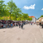 แหล่งรวมวัฒนธรรมอาหารสโลวีเนีย ตั้งอยู่ริมแม่น้ำ Ljubljanica ห่างจาก Tivoli Park เพียงระยะเดินสบาย ๆ ออกแบบโดย Jože Plečnik ในช่วงทศวรรษที่ 19 แบ่งเป็นสองส่วนอย่างชาญฉลาด ด้วยอาคารเสาโค้งทรงคลาสสิกที่ปกป้องผู้ค้าจากแสงแดด และลานกลางแจ้งที่อบอวลด้วยกลิ่นหอมของผลไม้ตามฤดูกาล ทุกเช้าชาวเมืองจะมาจับจ่ายผักสดที่เพิ่งเก็บจากไร่ ชีสแกะจากฟาร์มบนเทือกเขาแอลป์ และขนมปังอบใหม่จากเตาไม้ ส่วนโซนอาหารสำเร็จรูปนั้นเป็นสวรรค์ของนักชิม ซึ่งเต็มไปด้วยสตรีทฟู้ดอย่าง “Kranjska Klobasa” ไส้กรอกสไตล์ท้องถิ่น หรือ “Potica” ขนมหวานโบราณที่หาทานยาก นอกจากนี้ยังมีโซนคาเฟ่ริมน้ำ ซึ่งเป็นจุดชมวิวชั้นดีสำหรับดูเรือคายัคล่องผ่านไปมาอีกด้วย