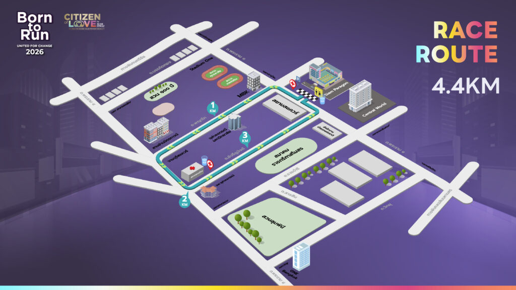 กิจกรรมวิ่งการกุศล “Citizen of Love : Born to Run 2026 United for Change” จะจัดขึ้นในวันอาทิตย์ที่ 18 มกราคม 2569 ณ สยามพารากอน แบ่งระยะการแข่งขันออกเป็น 2 ประเภท ได้แก่ มินิมาราธอน 10.5 กิโลเมตร และฟันรัน 4.4 กิโลเมตร เปิดรับสมัครผู้เข้าร่วมกิจกรรมผ่านทางออนไลน์ https://thai.fit/c/BTR2026 ตั้งแต่วันนี้เป็นต้นไป ค่าสมัครระยะมินิมาราธอน 899 บาท ระยะฟันรัน 799 บาท พิเศษสำหรับสมาชิก ONESIAM SuperApp สามารถรับโค้ดส่วนลด 100 บาท เพื่อสมัครร่วมกิจกรรมราคาพิเศษได้ทุกระยะ โดยผู้ร่วมกิจกรรมจะได้รับเสื้อวิ่งที่ระลึกสุดพิเศษออกแบบโดยศิลปินสตรีทอาร์ต และป็อปอาร์ต BENZILLA เจ้าของคาแรคเตอร์สามตายอดฮิต และผู้ร่วมกิจกรรมที่วิ่งเข้าเส้นชัยจะได้รับเหรียญรางวัลรักษ์โลกสุดพิเศษออกแบบโดย BENZILLA นอกจากจะดีไซน์น่ารักเหมาะแก่การเก็บสะสมแล้ว ยังสามารถนำมาใช้ประโยชน์เป็นที่เปิดขวดน้ำได้ ตัวเหรียญยังทำมาจากฝาขวดน้ำพลาสติกที่ได้มาจากการคัดแยกขยะภายใต้โครงการ Journey to Zero Waste ของกลุ่มบริษัทสยามพิวรรธน์ ส่งต่อให้ QUALY DESIGN แบรนด์ผลิตภัณฑ์ไลฟ์สไตล์รักษ์โลกเป็นผู้ผลิต