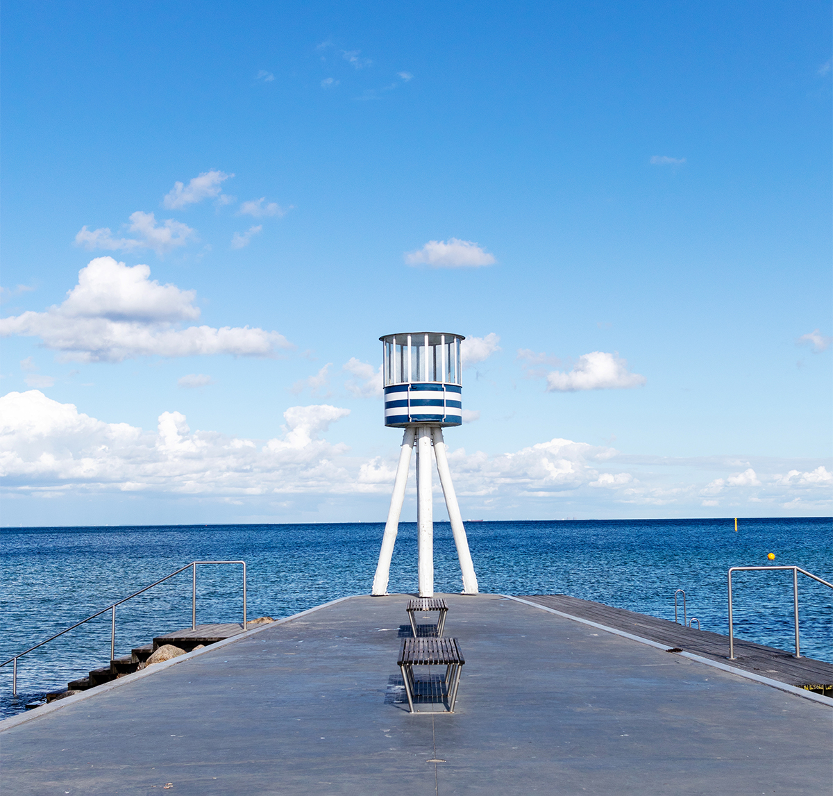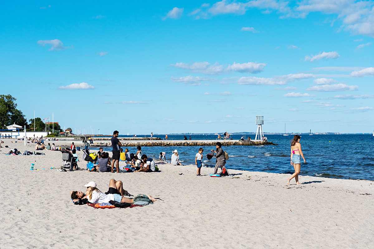 เดินทางเลียบชายฝั่งต่อไปจนถึง Bellevue Beach ชายหาดยอดนิยมของคนท้องถิ่นที่มีทรายขาวละเอียดและน้ำทะเลใสสะอาด ไฮไลท์ของที่นี่คือ หอประภาคารอันโดดเด่นที่ออกแบบโดย Arne Jacobsen ซึ่งไม่เพียงงดงามแต่ยังเป็นสัญลักษณ์ของการออกแบบสไตล์เดนมาร์กดั้งเดิมตั้งตระหง่านท้าทายแสงแดดและลมทะเลพัดผ่าน เป็นจุดถ่ายรูปที่สวยงาม เหมาะทั้งสำหรับว่ายน้ำ เล่นทราย อาบแดด หรือเพียงนั่งชมวิวและเพลิดเพลินกับบรรยากาศฤดูร้อน เสียงคลื่นและสายลมทะเลช่วยเติมเต็มความผ่อนคลายได้อย่างสมบูรณ์แบบ