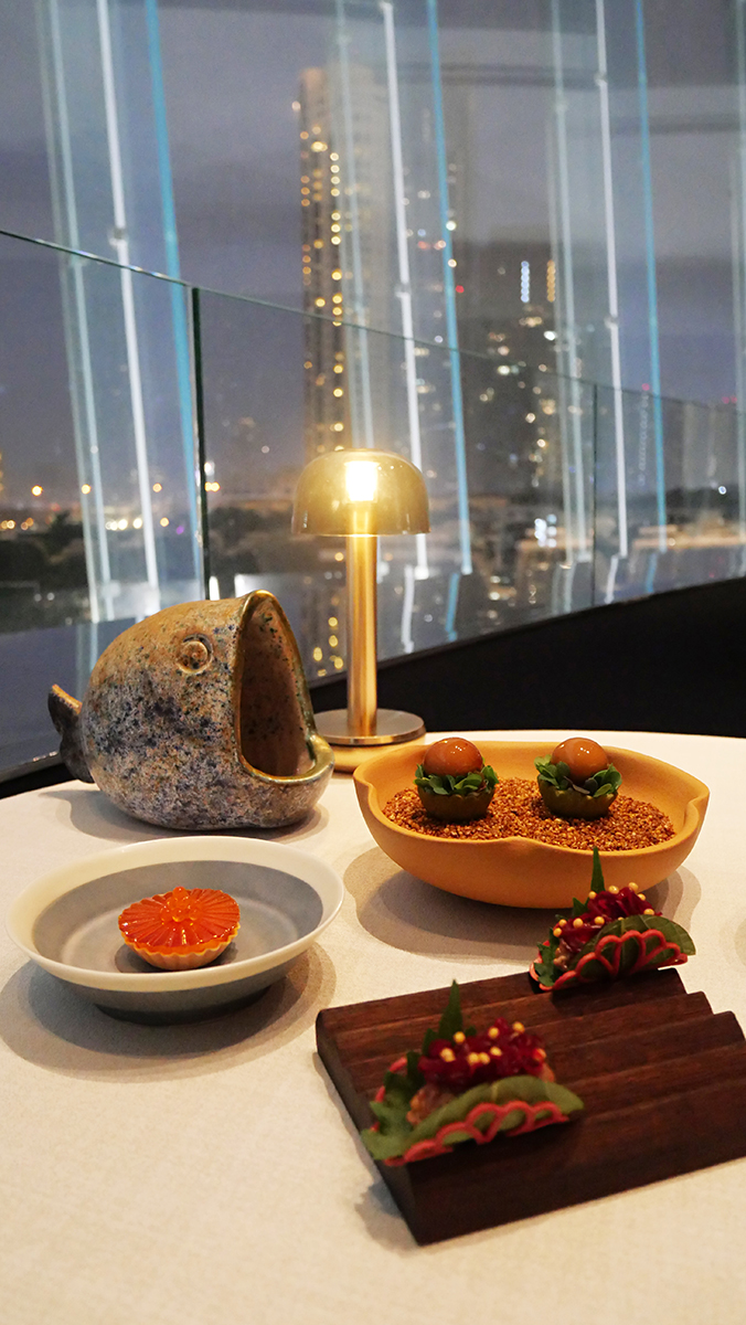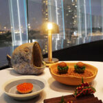 เชื้อเชิญให้ผู้มาเยือนได้มาสำรวจรสชาติอาหารฝรั่งเศสสมัยใหม่ผ่านคอร์สมื้อค่ำอย่างครบทุกมิติ “Let a Blue Evening Unfold”  เสิร์ฟอย่างพิถีพิถันทั้งอาหารเรียกน้ำย่อย ซุป ซาชูสลัดเนื้อและปลา ไปจนถึงของหวานสร้างสรรค์ที่มีเอกลักษณ์เฉพาะตัว ทุกจานมีเรื่องราวและเอกลักษณ์เฉพาะตัวอันน่าจดจำ อิ่มอร่อยไปพร้อมกับการชมวิวแม่น้ำเจ้าพระยาที่งดงาม เติมเต็มประสบการณ์ค่ำคืนให้กลายเป็นความทรงจำสุดพิเศษ