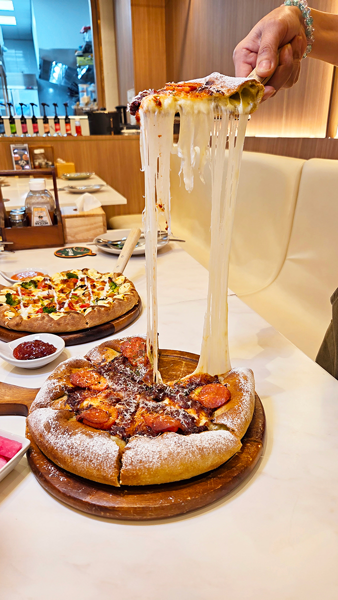 ร้านพิซซ่าชื่อดังจากเกาหลีใต้ที่โดดเด่นด้วยการผสานความกรอบนอกนุ่มในของแป้งเข้ากับท็อปปิ้งสไตล์ยุโรปแบบต้นตำรับ ตั้งแต่ซอสเข้มข้นที่เคี่ยวอย่างพิถีพิถัน ชีสคุณภาพสูงที่ละลายเยิ้มทุกคำ ไปจนถึงวัตถุดิบสดใหม่ ทั้งเนื้อสัตว์และผักทุกชนิดที่คัดสรรอย่างพิถีพิถัน ทุกคำของพิซซ่าที่นี่จึงเต็มไปด้วยรสชาติกลมกล่อมและสมดุล เหมาะสำหรับมื้อสนุก ๆ ของครอบครัวหรือกลุ่มเพื่อนที่ต้องการแชร์ความอร่อยอย่างไม่เร่งรีบ