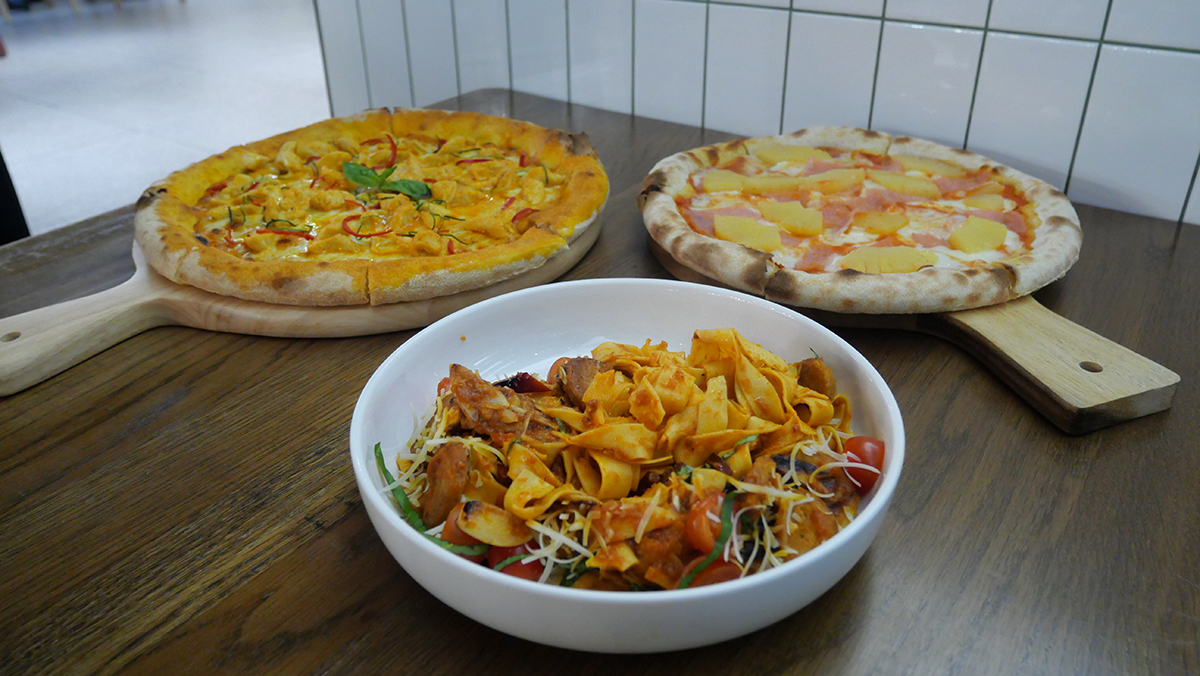 เมนูที่มาถึงแล้วต้องสั่งคือ Margherita Classic แป้งบางกรอบพร้อมซอสมะเขือเทศสดและชีสมอสซาเรลล่าหอมละมุน Pepperoni Lovers สำหรับคนชอบรสจัดเต็มด้วยเปปเปอโรนีกรอบ ๆ Quattro Formaggi พิซซ่าชีส 4 ชนิดที่ละลายเข้ากันอย่างลงตัว และ Hawaiian Pizza รสหวานละมุนของสับปะรดสดตัดกับแฮมกรอบ เสิร์ฟร้อน ๆ ในบรรยากาศร้านเรียบง่ายแต่ทันสมัย โปร่งโล่งสบาย เหมาะสำหรับมื้อสนุกของครอบครัวและเพื่อนฝูง