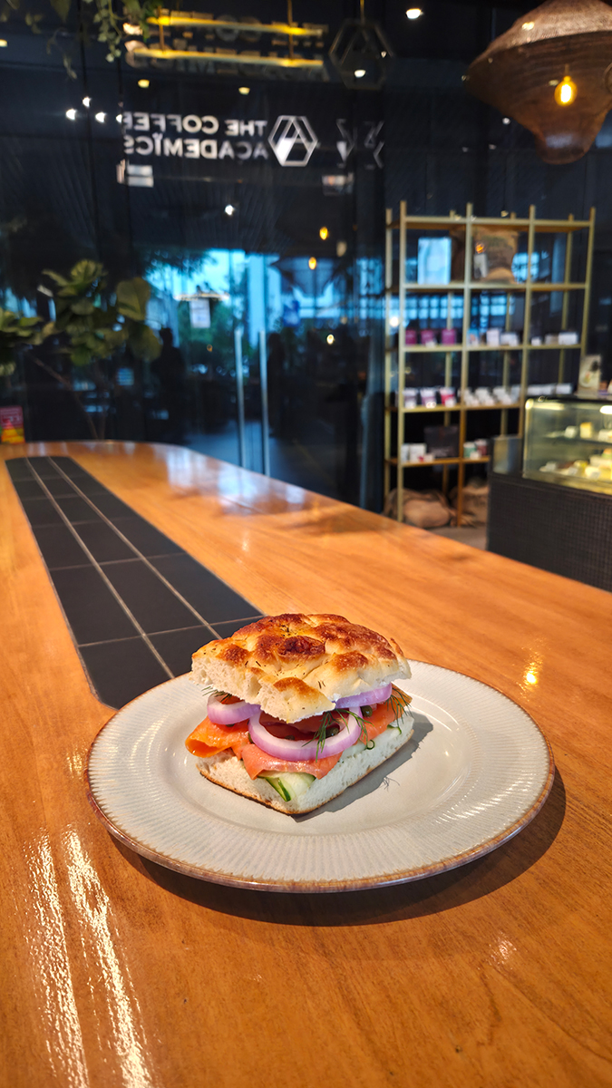 ภายในร้านอบอวลไปด้วยกลิ่นกาแฟและบรรยากาศร่วมสมัย ตกแต่งด้วยโทนไม้และสีเขียวจากต้นไม้ เพิ่มความอบอุ่นและผ่อนคลาย เหมาะทั้งสำหรับการทำงานเบา ๆ การพบปะพูดคุย หรือใช้เวลาสงบ ๆ กับตัวเอง เมนูแนะนำมีตั้งแต่ Yuzu Long Black, Iced Okinawa Signature Coffee ไปจนถึงจานมื้อสายอย่าง Academics Breakfast, Scrambled Eggs and Avocado Croissant และ Salmon Focaccia Sandwich เสิร์ฟพร้อมความพิถีพิถันในทุกรายละเอียด รังสรรค์ให้ทุกมื้อที่ The Coffee Academics ให้เป็นมากกว่าการพักผ่อน แต่คือช่วงเวลาของศิลปะและแรงบันดาลใจอันไร้ขีดจำกัด