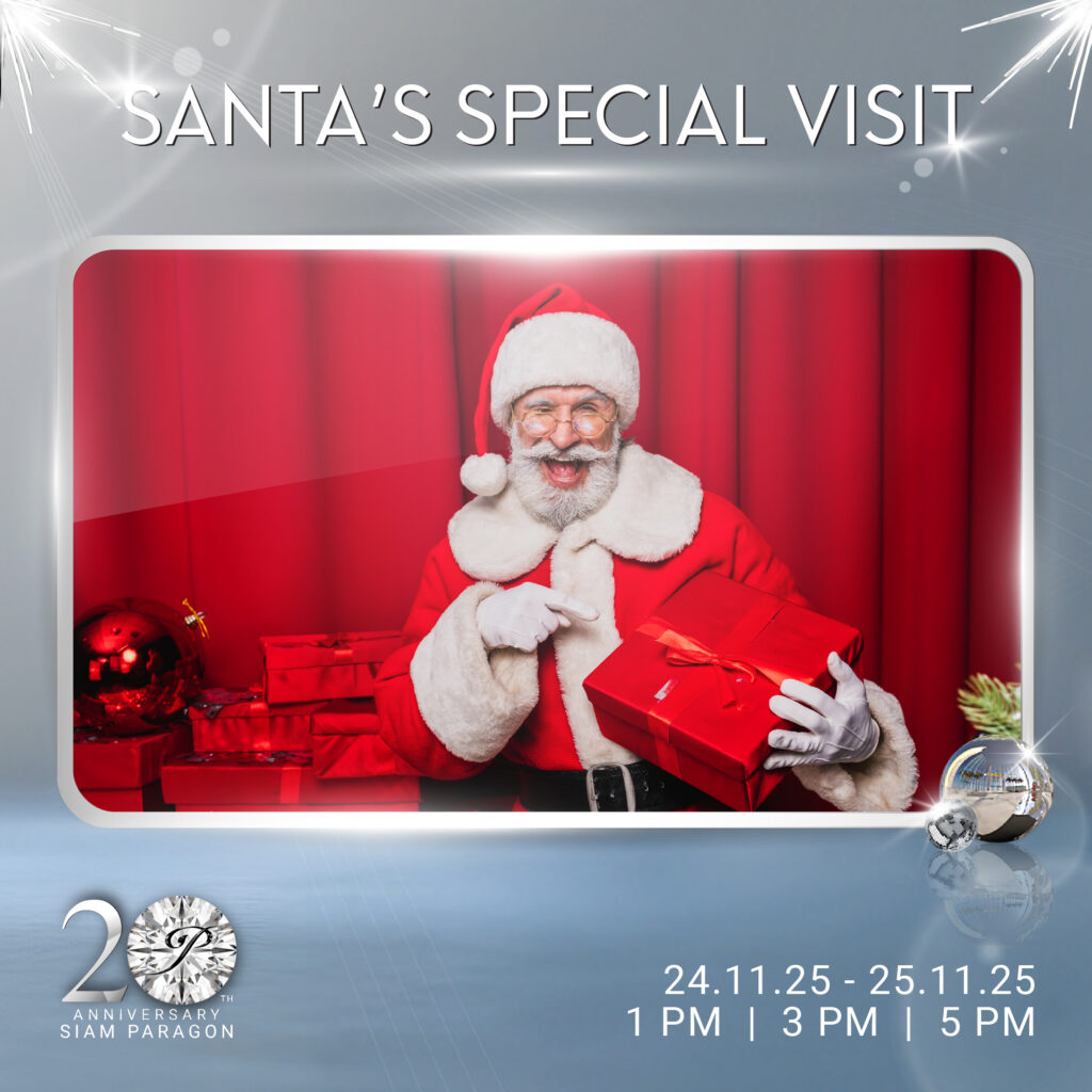 - วันที่ 24-25 ธันวาคม 2568 และทุกวันเสาร์ อาทิตย์ เวลา 00 น. / 15.00 และ 17.00 น. เตรียมพบกับเซอร์ไพรส์สุดพิเศษจากเหล่า ซานต้า แซนตี้ และขบวนพาเหรดแฟนซี ที่จะพาทุกคนเดินทางเข้าสู่บรรยากาศเทศกาลคริสต์มาส พร้อมมอบรอยยิ้มและความสุขให้กับทุกคน ทั่วทุกพื้นที่ของสยามพารากอน
