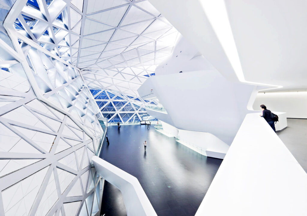จาก Guangzhou Library เดินต่อไม่ไกล ก็จะถึง Guangzhou Opera House อาคารดีไซน์โค้งเว้าอย่างโดดเด่นราวกับมีชีวิตภายใต้ท้องฟ้าโปร่งใสของกวางโจว ภายในมีการซ้อมการแสดงอยู่ตลอด เสียงรองเท้านักบัลเลต์กระทบพื้นพอดี ทำให้สัมผัสได้ถึงการผสานระหว่างสถาปัตยกรรมและศิลปะอย่างลงตัว เป็นจุดชมความงามที่ทั้งตื่นตาและสร้างแรงบันดาลใจได้เป็นอย่างดี