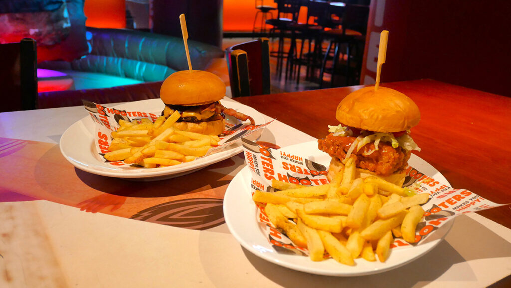 Hooters: Iconic American Sports Bar & Dining Experience ร้านอาหารและสปอร์ตบาร์ระดับตำนานจากสหรัฐอเมริกาที่มอบประสบการณ์ความสนุกสนานแบบเต็มรูปแบบ ผสมผสานบรรยากาศคึกคักของกีฬาและสังสรรค์เข้ากับรสชาติอาหารสไตล์อเมริกันแท้ ๆ ตั้งอยู่ใจกลางกรุงเทพฯ เหมาะสำหรับผู้ที่ต้องการชมการแข่งขันกีฬาสด ๆ กับเพื่อนฝูง หรือเพียงแค่ต้องการมื้ออาหารสนุก ๆ กับบรรยากาศเป็นกันเอง ตัวร้านโดดเด่นด้วยโทนสีส้ม-ดำ สะดุดตา การตกแต่งทันสมัยแต่ยังคงเอกลักษณ์ของแบรนด์ Hooters อย่างครบถ้วน พร้อมจอทีวีขนาดใหญ่หลายจุดเพื่อให้คุณไม่พลาดทุกการแข่งขันกีฬา ไม่ว่าจะเป็นฟุตบอล บาสเก็ตบอล หรืออเมริกันฟุตบอล พนักงานสาวสวยของร้านที่เป็นเอกลักษณ์พร้อมให้บริการด้วยรอยยิ้ม ทำให้ทุกมื้ออาหารเต็มไปด้วยความสนุกสนานและความอบอุ่น เมนูไฮไลท์มีทั้ง Hooters Wings ปีกไก่ทอดสูตรพิเศษที่มีหลายระดับความเผ็ด ตั้งแต่รสคลาสสิกไปจนถึงเผ็ดจัดจ้าน เนื้อไก่ชุ่มฉ่ำ เคลือบซอสเข้มข้นเต็มคำ Hooters Burger เบอร์เกอร์ชิ้นโตที่คัดสรรเนื้อคุณภาพเยี่ยม เสิร์ฟพร้อมชีสละลายและซอสสูตรพิเศษ Crispy Chicken Sandwich ไก่ทอดกรอบนอกนุ่มในพร้อมเครื่องเคียงครบชุด นอกจากนี้ยังมีเฟรนช์ฟรายส์ กรอบร้อน ๆ Onion Rings ชิ้นใหญ่กรอบนอกนุ่มใน และ Mozzarella Sticks ชีสทอดร้อน ๆ ให้ลิ้มลองควบคู่กับเครื่องดื่มเย็น ๆ ทั้งเบียร์นำเข้า ค็อกเทลสูตรเฉพาะ และน้ำอัดลม นอกจากนี้ Hooters ยังมีเมนูพิเศษสำหรับดูกีฬาแบบกลุ่ม เช่น Combo Platter เซ็ตรวมปีกไก่ เฟรนช์ฟรายส์ และ Onion Rings สำหรับแชร์กัน พร้อม ซอสหลากรส ตั้งแต่ Honey BBQ, Buffalo ไปจนถึงซอสเผ็ดร้อน ให้คุณปรับรสชาติได้ตามใจชอบ เติมเต็มความสนุกสนานให้กับมื้อพิเศษได้อย่างเต็มรูปแบบ เต็มอิ่มทั้งบรรยากาศร้านสปอร์ตบาร์ หรือลิ้งรสชาติอาหารอเมริกันคลาสสิก พร้อมการบริการที่เป็นมิตร และความเร้าใจจากการชมกีฬาสดทุกรูปแบบ ให้ทุกช่วงเวลาที่ Hootters กลายเป็นนาทีสำคัญที่เต็มไปด้วยเสียงหัวเราะ รสชาติ และความคึกคักที่หาไม่ได้จากที่ไหน Hooters คือเป็นจุดหมายแห่งความสนุกสำหรับทุกโอกาส ไม่ว่าจะเป็นมื้ออาหารกับเพื่อน การสังสรรค์หลังเลิกงาน การชมกีฬาแบบเต็มอิ่ม หรือแม้กระทั่งวันครอบครัวที่อยากสัมผัสบรรยากาศอเมริกันแท้ ๆ ใจกลางกรุงเทพฯ ทุกครั้งที่ก้าวเข้าร้านคือการได้สัมผัสทั้งรสชาติและประสบการณ์ที่น่าประทับใจ Address: ซ.สุขุมวิท 4 แขวงคลองเตย เขตคลองเตย กรุงเทพมหานครTel: +66 93 193 9955Opening Hours: ทุกวัน 11.00 – 2.00 น. Gallery