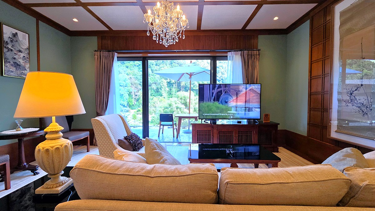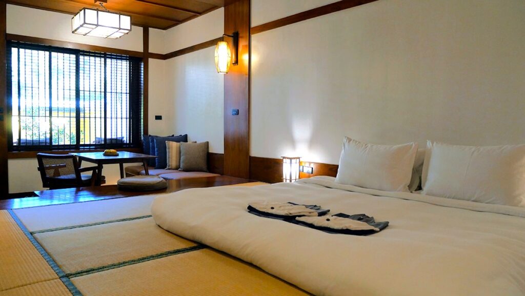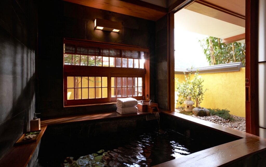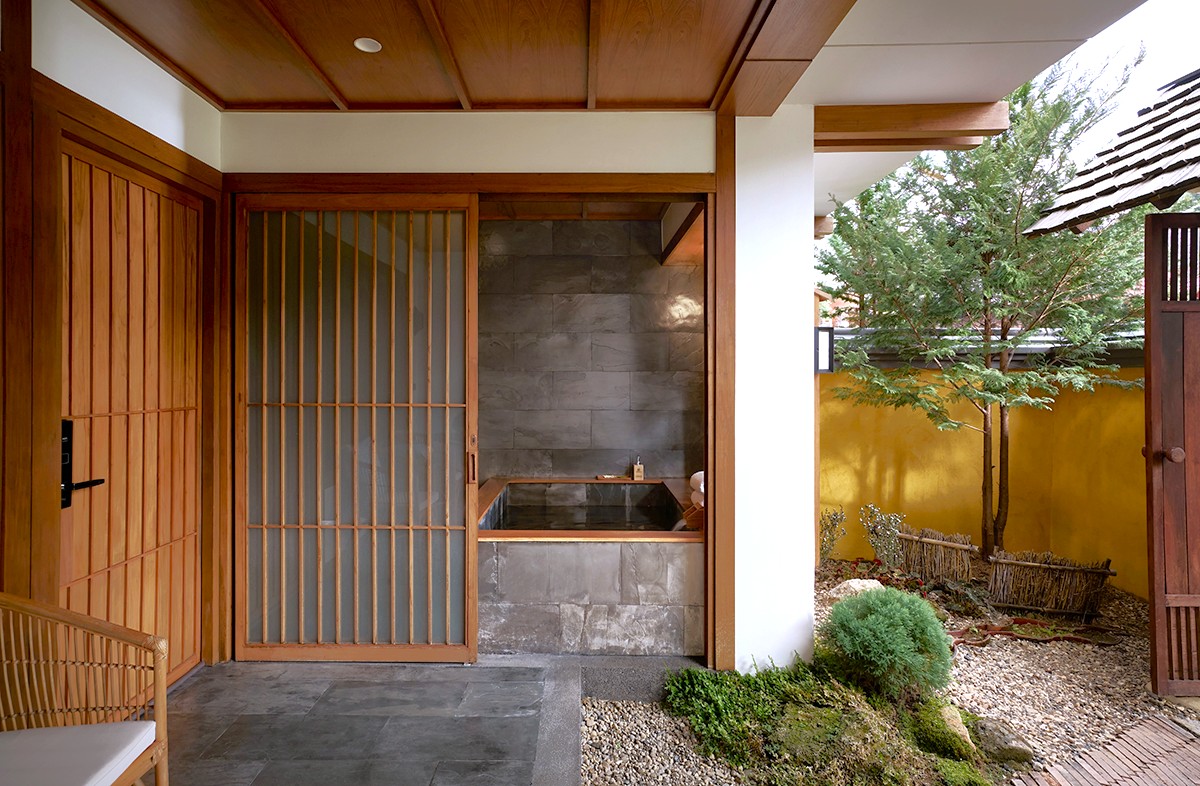 - Imperial Tatami Onsen Suite ห้องพักที่นำเสนอประสบการณ์การพักผ่อนสไตล์เรียวกังแท้ ด้วยห้องพักตกแต่งอย่างพิถีพิถัน พร้อมอ่างออนเซ็นส่วนตัวที่เปิดรับวิวสวนหินสไตล์ญี่ปุ่นด้านหน้าห้องพัก เหมาะสำหรับคู่รักหรือผู้ที่มุ่งเน้นการพักผ่อนเพื่อสุขภาพอย่างแท้จริง