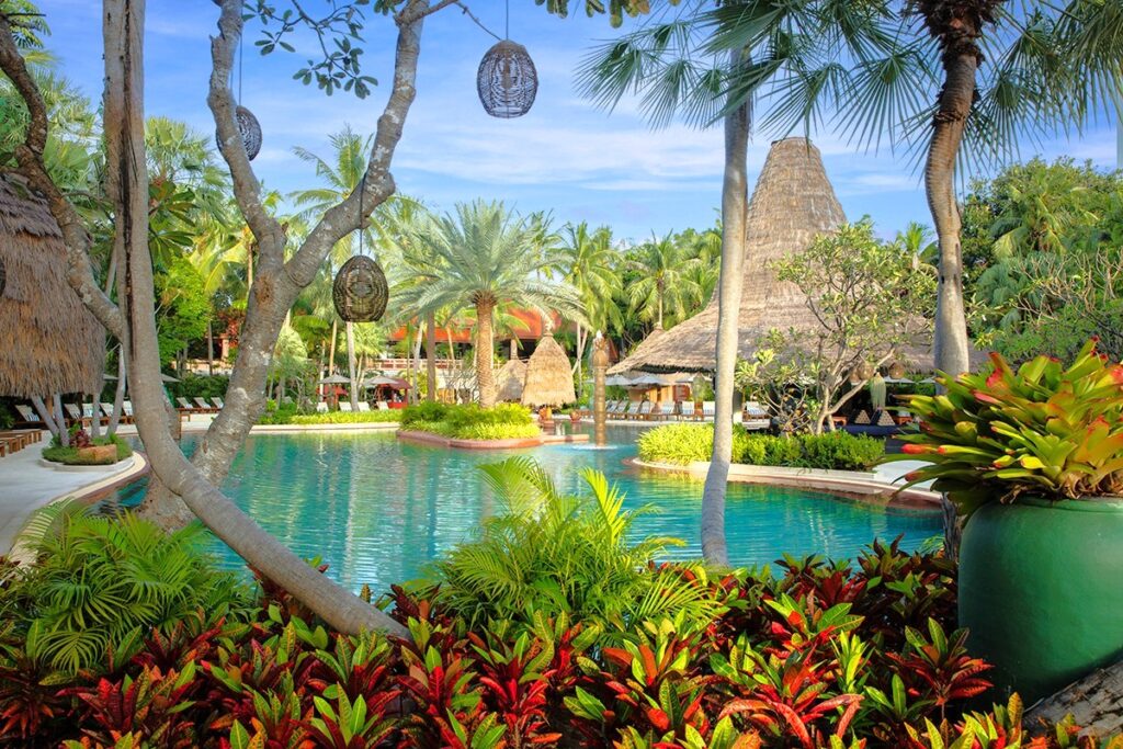 นอกเหนือจากการเป็นภาพแทนของความหรูหราริมทะเลแล้ว อนันตรา หัวหิน ยังถ่ายทอดบรรยากาศของ “หมู่บ้านแห่งการพักผ่อน” ที่ค่อย ๆ โอบล้อมผู้มาเยือนด้วยสวนเขตร้อน บ่อน้ำ ดอกบัว และศาลาเปิดโล่งซึ่งแทรกตัวอยู่อย่างเป็นธรรมชาติ