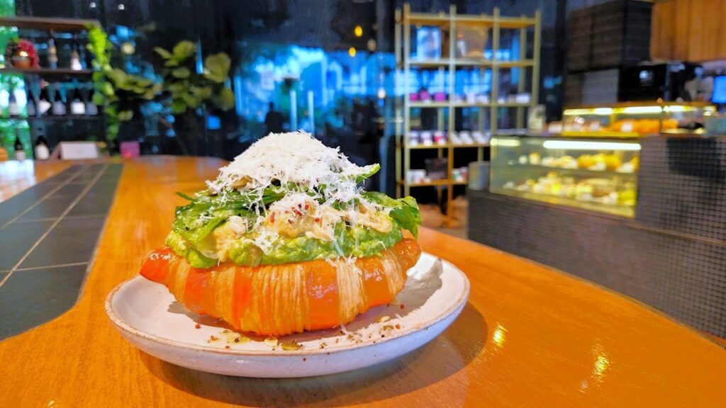 • Scrambled Eggs and Avocado Croissant ครัวซองต์กรอบนอกนุ่มใน เสิร์ฟพร้อมไข่คนและอโวคาโดสด ราดหน้าด้วยชีสและซอสสูตรพิเศษ เพิ่มรสชาติหอมมันกลมกล่อม