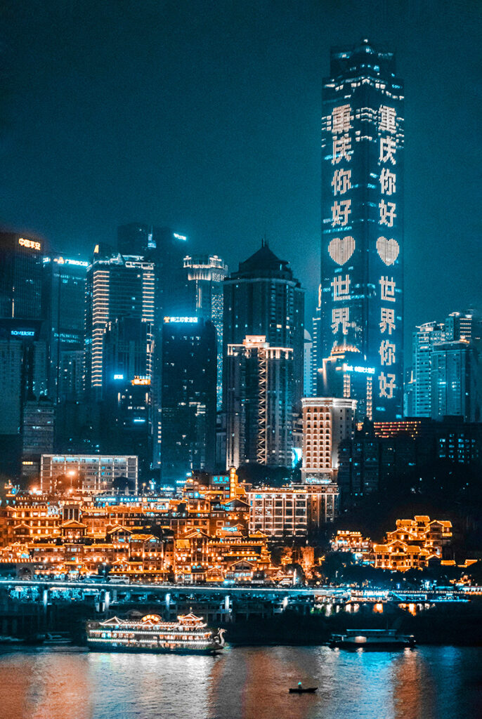 ฉงชิ่งไม่เพียงแต่เป็นเมืองเก่าที่เต็มไปด้วยเรื่องราวประวัติศาสตร์ แต่ยังเป็น มหานครร่วมสมัยที่เต็มไปด้วยความคิดสร้างสรรค์ เส้นขอบฟ้าของเมืองประดับด้วยตึกสูงระฟ้า ศูนย์การค้าขนาดใหญ่ และย่านริมน้ำที่สว่างไสว แสงสีและสถาปัตยกรรมร่วมสมัยผสานกับภูมิประเทศเนินเขาและแม่น้ำอย่างลงตัว สร้างสมดุลระหว่าง ความทันสมัยกับเสน่ห์ของอดีต