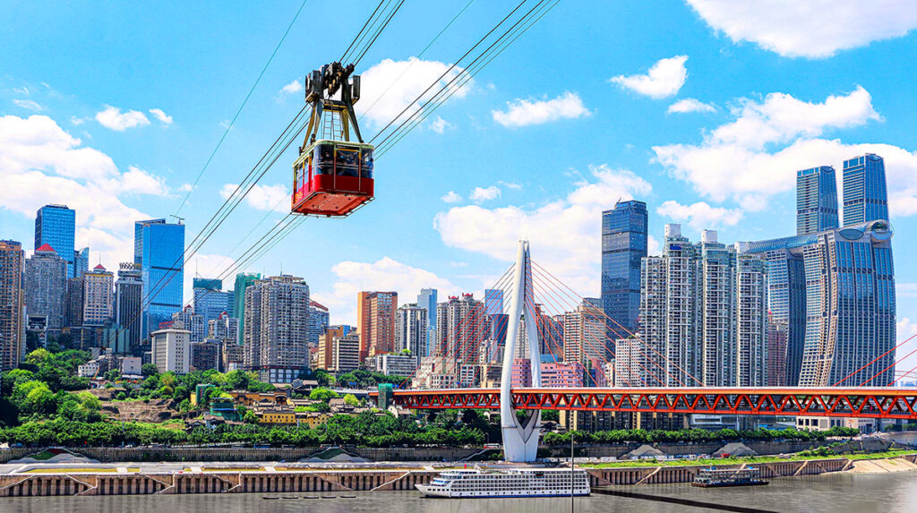 การขึ้นกระเช้าข้ามแม่น้ำแยงซีไม่ใช่เพียงการเดินทางจากฝั่งหนึ่งสู่อีกฝั่ง แต่คือประสบการณ์ชมเมืองจากเหนือพื้นดิน ภายในกระเช้า คุณจะได้เห็นภาพรวมของฉงชิ่งอย่างชัดเจน ทั้งตึกสูงที่ตั้งเรียงตามภูเขา แม่น้ำที่คดเคี้ยว และวิถีชีวิตของผู้คนเบื้องล่าง เส้นทางสายนี้จึงเป็นการผสมผสานความสะดวกสบายของการเดินทางเข้ากับความงดงามของทัศนียภาพได้อย่างลงตัว