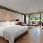ห้องพักและห้องสวีททั้ง 159 ห้องของรีสอร์ตออกแบบด้วยเส้นสายเรียบ โทนสีอบอุ่น และรายละเอียดที่ได้แรงบันดาลใจจากงานศิลป์ร่วมสมัย ถ่ายทอดตัวตนของ Le Méridien อย่างชัดเจน