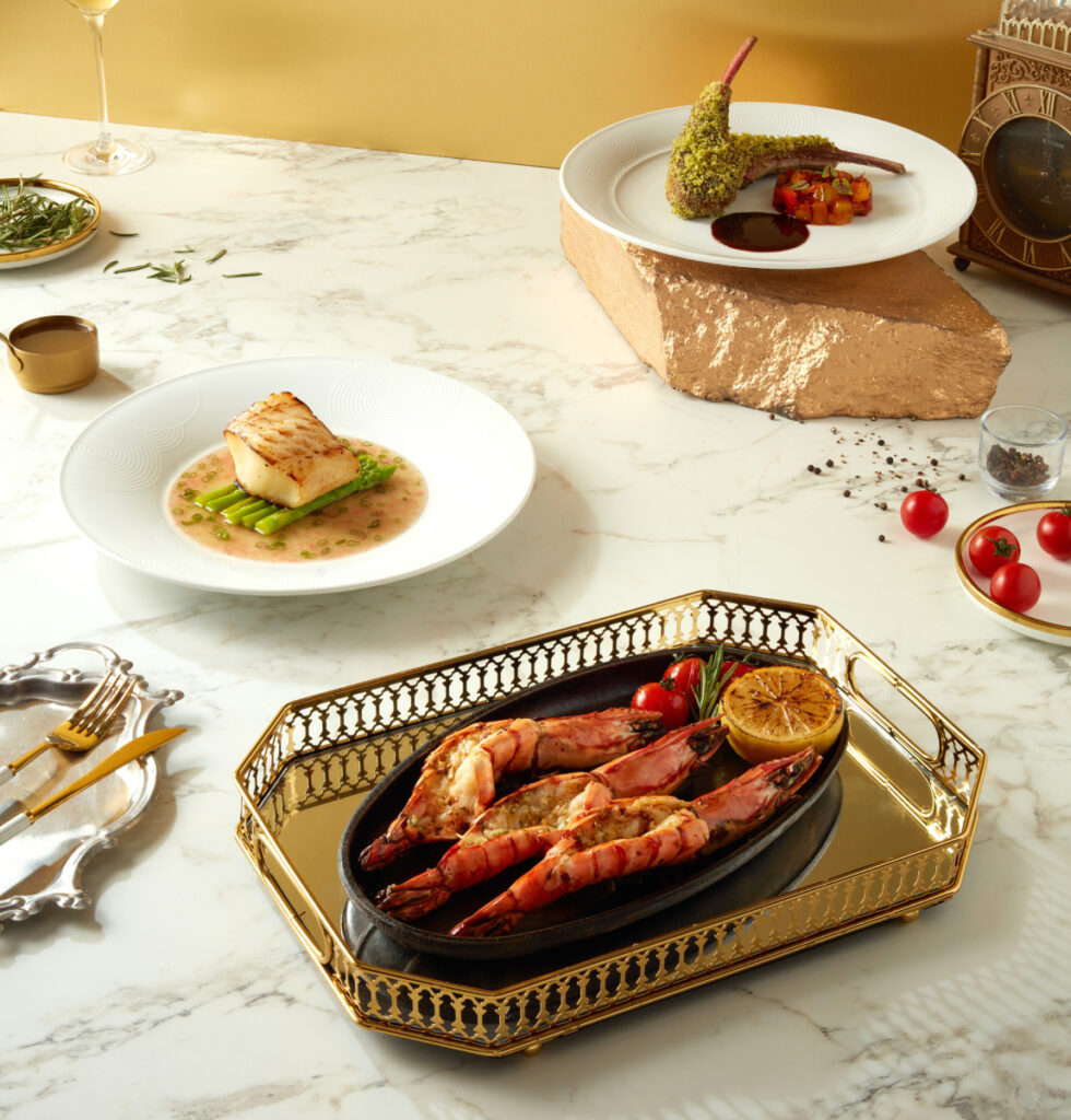 เมนูเริ่มต้นด้วยวัตถุดิบสุดพรีเมียมอย่าง ฟัวกราส์ย่าง และวากิวบีฟคาร์ปาชโช รวมถึงซุปล็อบสเตอร์บิสก์รสละมุน และความสดชื่นของชีสบูราตากับมะเขือเทศสด