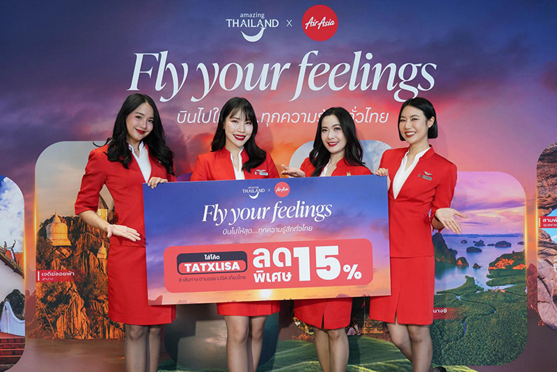 ไฮไลต์แคมเปญ “FLY YOUR FEELINGS บินไปให้สุด..ทุกความรู้สึกทั่วไทย”จากแอร์เอเชีย มอบส่วนลดพิเศษเพียงระบุโค้ด “TATXLISA” เพื่อรับสิทธิ์