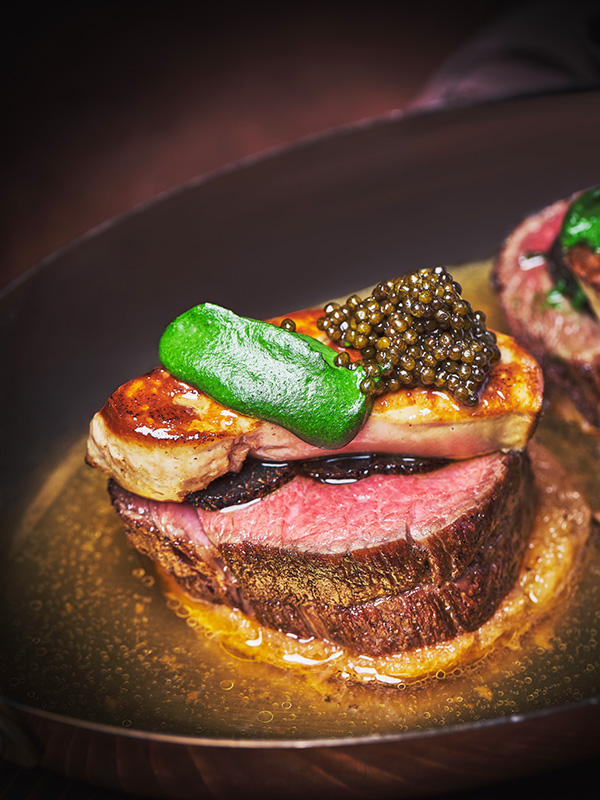 นอกจากซิกเนเจอร์เมนูอย่าง Rossini ห้องอาหารยังนำเสนอจานเด่นอื่น ๆ อาทิ Madison Beef Rossini, Grass-Fed Rack of Lamb ซี่โครงแกะเลี้ยงด้วยหญ้าโดดเด่นด้วยรสชาติอันเป็นเอกลักษณ์ เนื้อแน่นแต่นุ่มฉ่ำ และ Beef Tartare จาก Snake River Farms ที่คัดสรรเนื้อวัวคุณภาพเยี่ยมนำมาปรุงอย่างประณีตเพื่อคงความสดและรสสัมผัสดั้งเดิมของวัตถุดิบไว้ ทุกจานรังสรรค์โดยเชฟจัสติน พอล บาซุก (Chef Justin Paul Baziuk) ตั้งแต่เมนูเรียกน้ำย่อย ซุป จานหลัก เครื่องเคียง ไปจนถึงของหวาน พร้อมการคัดสรรไวน์คุณภาพเยี่ยมที่จับคู่กับสเต็กแต่ละจานอย่างลงตัวเพื่อยกระดับประสบการณ์การรับประทานอาหารให้สมบูรณ์แบบในทุกองค์ประกอบ