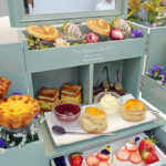 เริ่มต้นด้วยเมนูซิกเนเจอร์อย่าง The Royal Garden Butterfly Cookies ที่หลายคนตั้งใจมาลอง คุกกี้เนยบางกรอบ หอมชัดตั้งแต่หยิบขึ้นมา เนื้อสัมผัสเบาแต่ยังคงความแน่น กินคู่ชาร้อนแล้วเข้ากันอย่างพอดีโดยไม่ต้องเติมอะไรเพิ่ม จากนั้นค่อย ๆ เพิ่มมิติของรสชาติด้วย Tiramisu เนื้อนุ่มละมุน ให้รสกาแฟกำลังดี ไม่เข้มจนเกินไป และ Mango Napoleon ที่ให้ความสดชื่นจากมะม่วงรสหวานอมเปรี้ยว ตัดกับแป้งพัฟกรอบบาง ทำให้ทานได้เรื่อย ๆ แบบไม่รู้สึกเลี่ยน