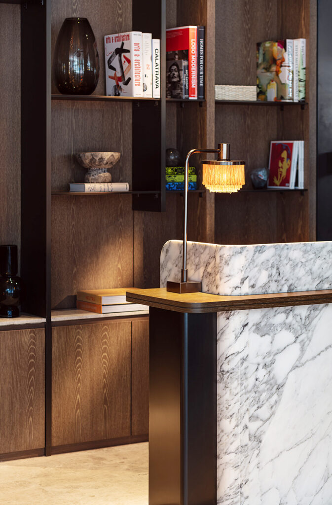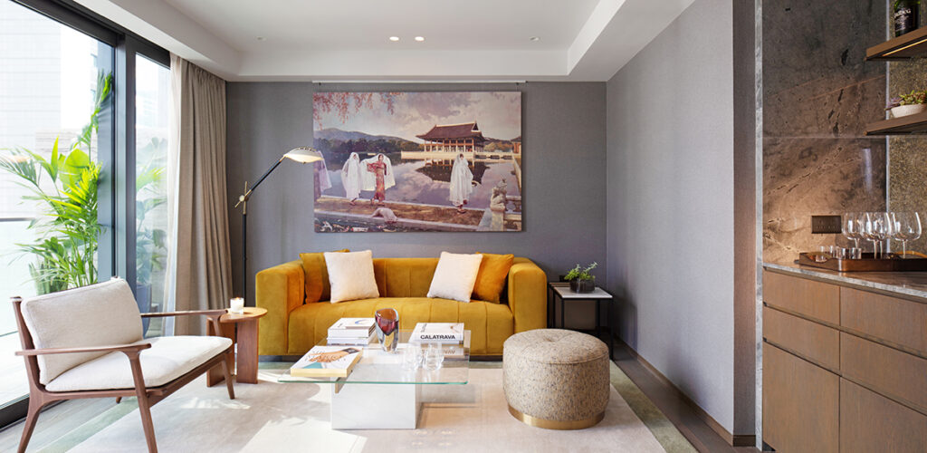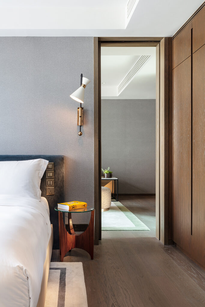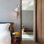 ตัวโรงแรมสูง 30 ชั้น ออกแบบโดย Tara Bernerd & Partners จากลอนดอน ที่ขึ้นชื่อเรื่องการเลเยอร์ดีไซน์ให้มีมิติ พอมาอยู่ที่นี่เลยเห็นชัดว่าเขาเล่นกับ texture และโทนสีได้สนุกแต่ยังดูแพง โทนอัญมณีที่ลึกนุ่มถูกจับมามิกซ์กับวัสดุหลากหลายแบบไม่แข็งเกินไป ตัดด้วยงานศิลปะที่เลือกมาอย่างตั้งใจ ทำให้ทั้งโรงแรมให้ความรู้สึกเหมือนอยู่ในพื้นที่ที่ถูก “Tailor-made” มาแล้ว ทุกอย่างลงตัวแบบไม่ต้องพยายามเยอะ เดินไปมุมไหนก็มีอะไรให้มอง มีอะไรให้รู้สึก
